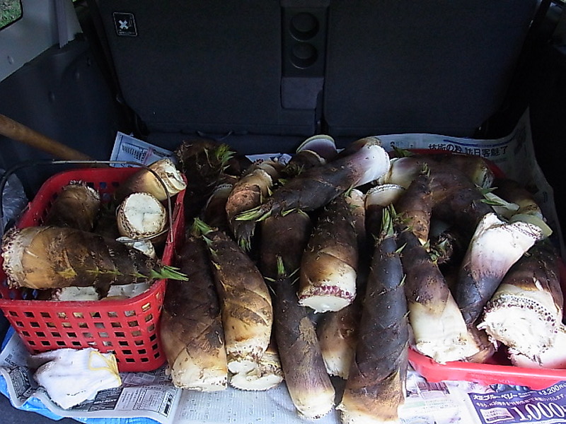 ウグイスの鳴き声に癒されながら66本の筍を採りました。