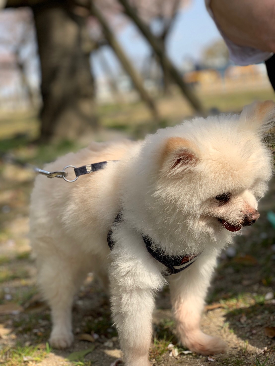 先日、スタッフ皆でお花見に行ってきました! お天気がコロコロ変わるこの時期。当初予定していた日は真冬の寒さと雨で泣く泣く断念しました… そしてリベンジの日、見事晴天です!! 満開には少し早かったですが、きれいな桜が楽しめました♪ ニコルくんも久々にお出かけできてよかったですね(*^_^*)