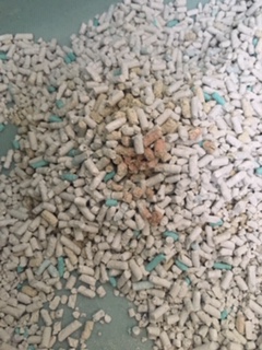 トイレ砂は鉱物の白っぽい砂を使っていますが