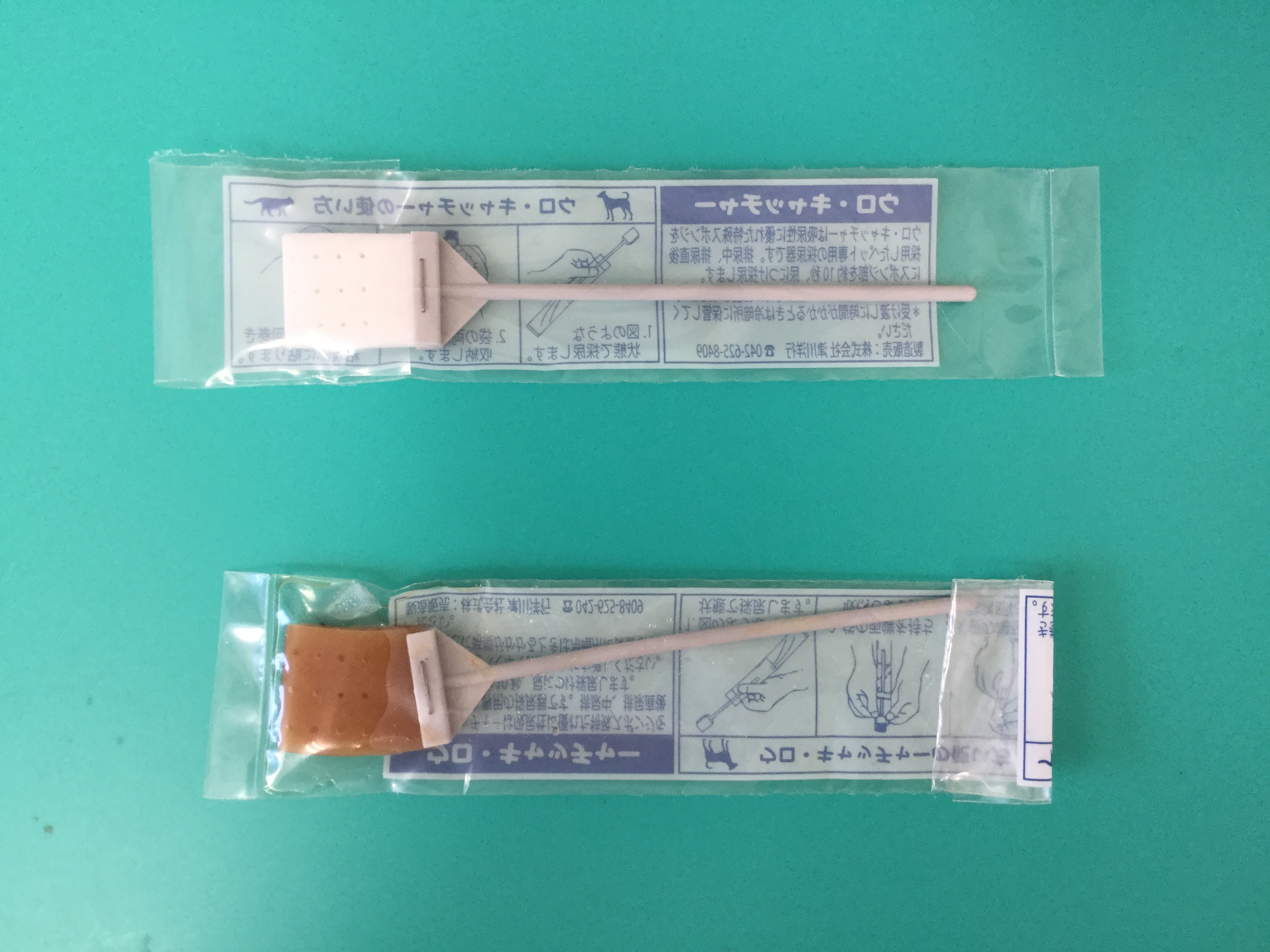 猫さんの排尿中にそっと近づき、先端のスポンジ部分に尿を当てます。