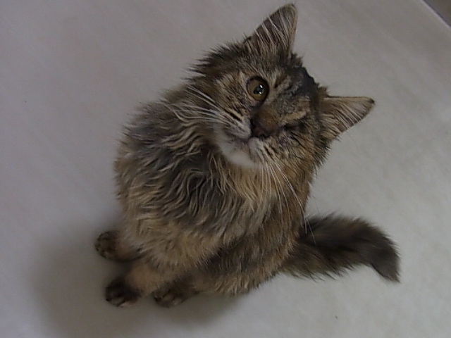 片目を失った状態で保護されました。